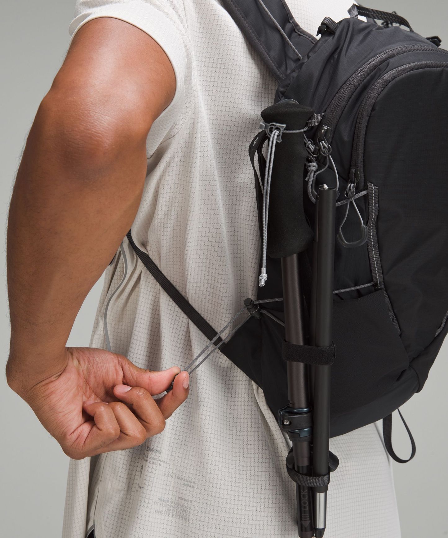 - Exterior loops hold a hiking pole (pole not included)