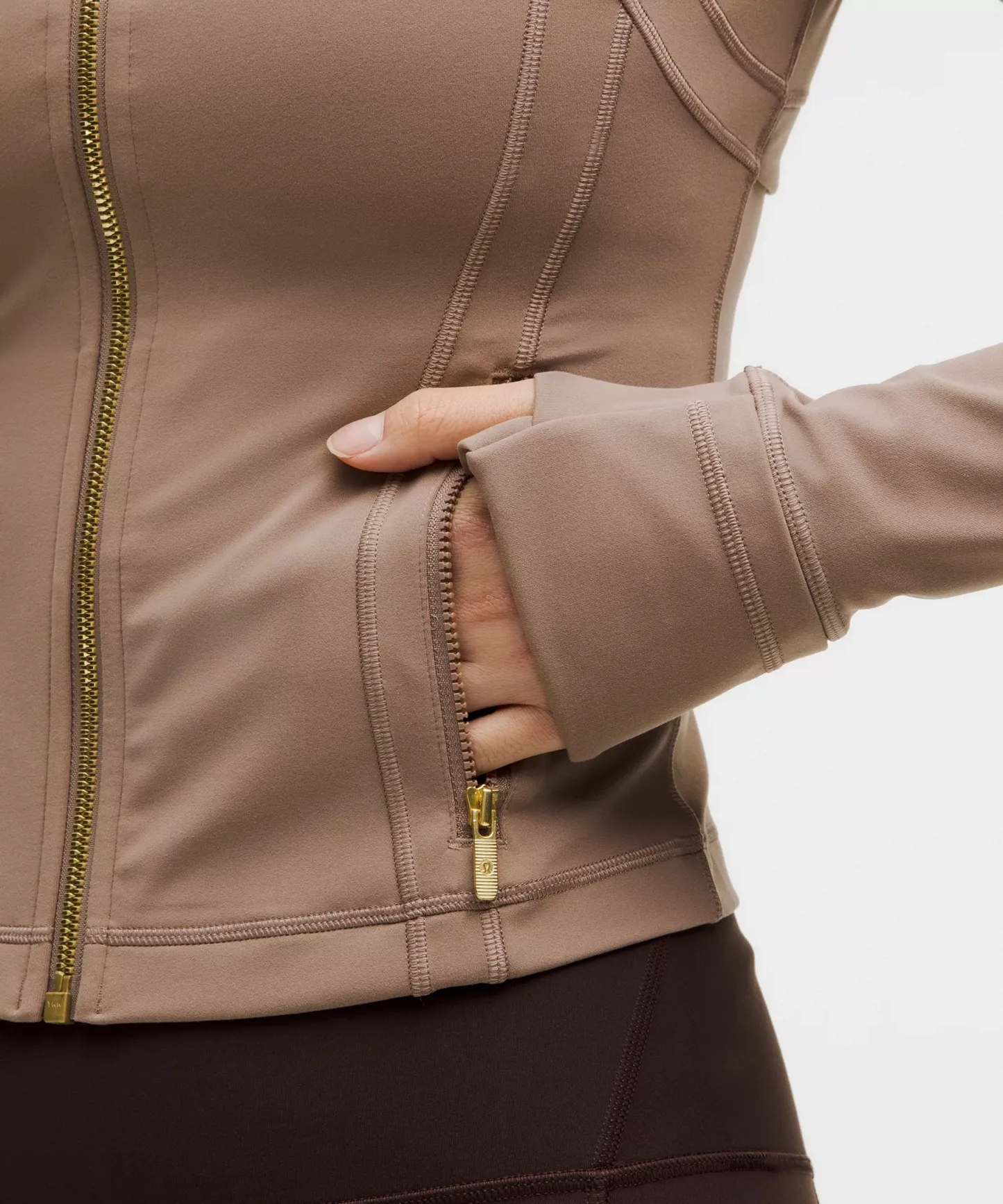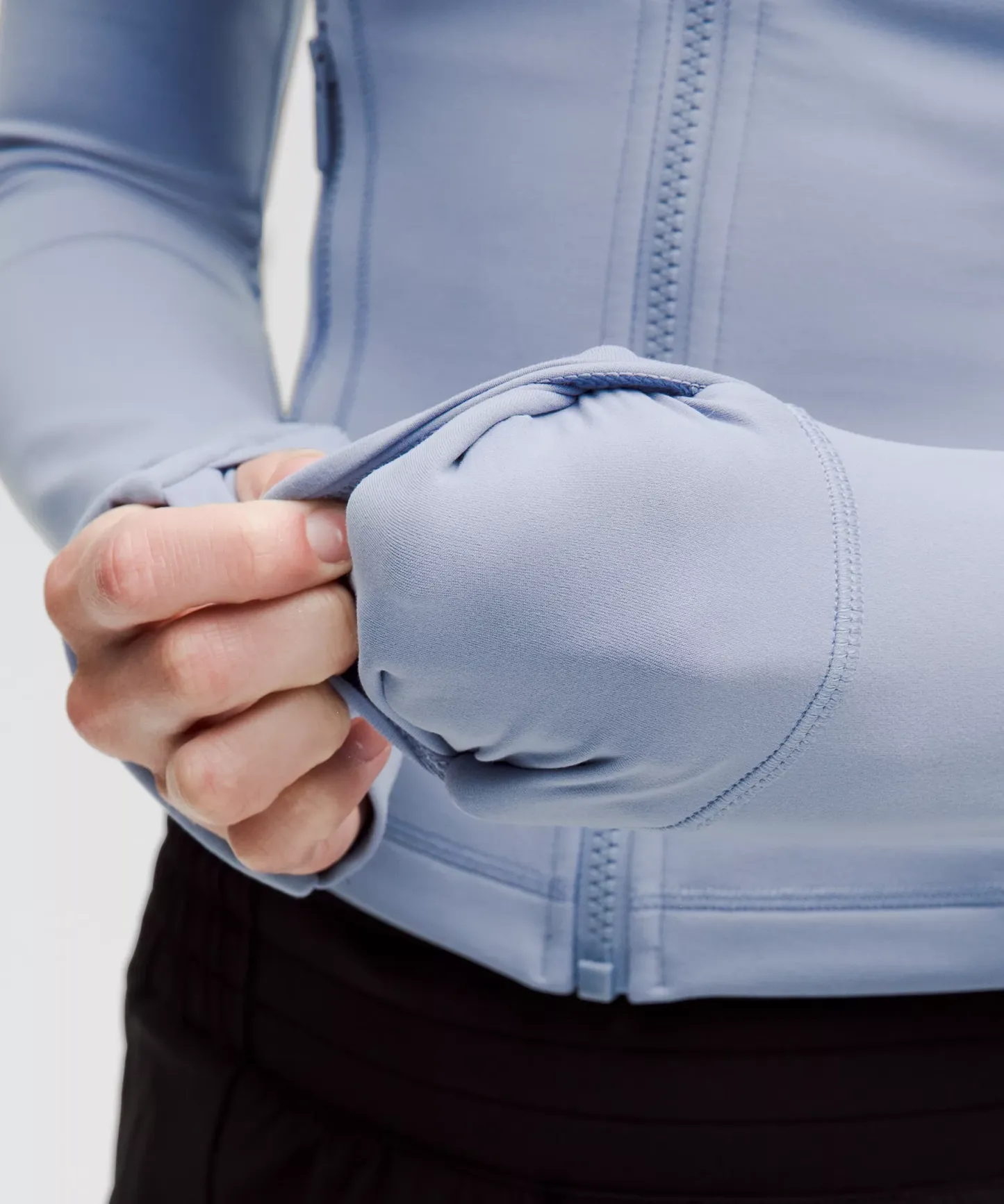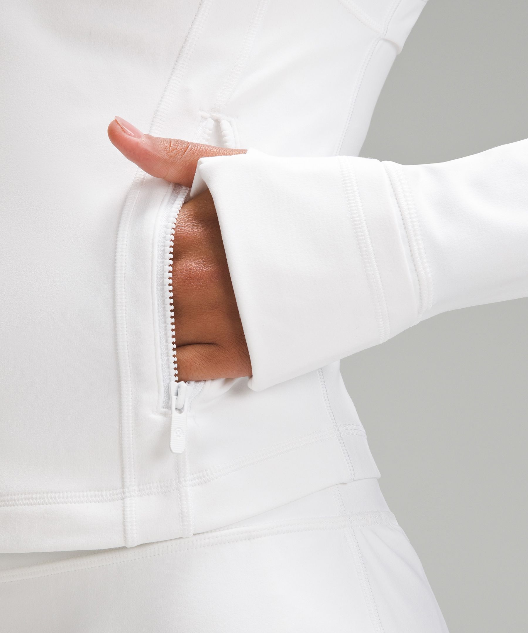 - Elastic zipper pull doubles as an emergency hair tie