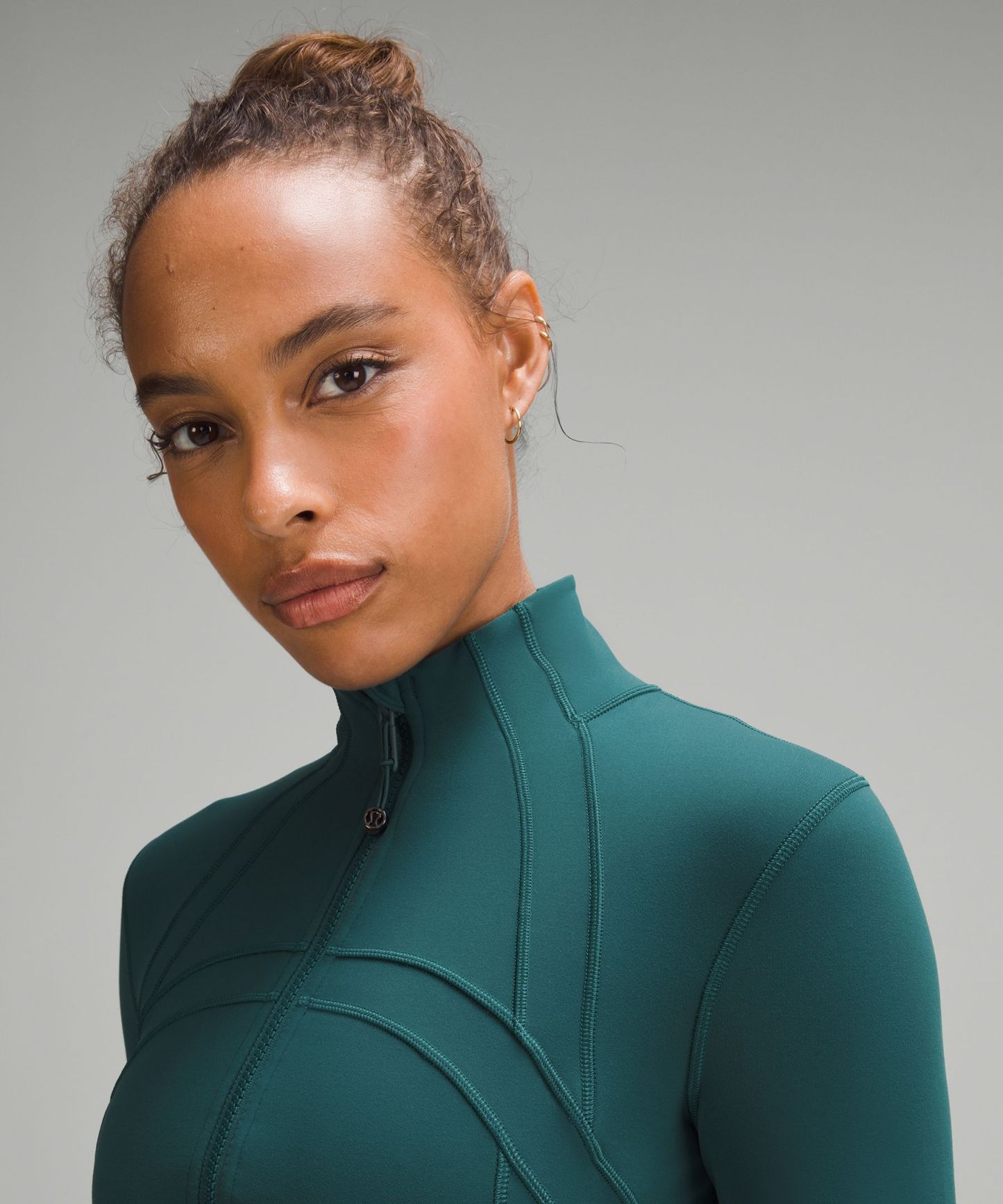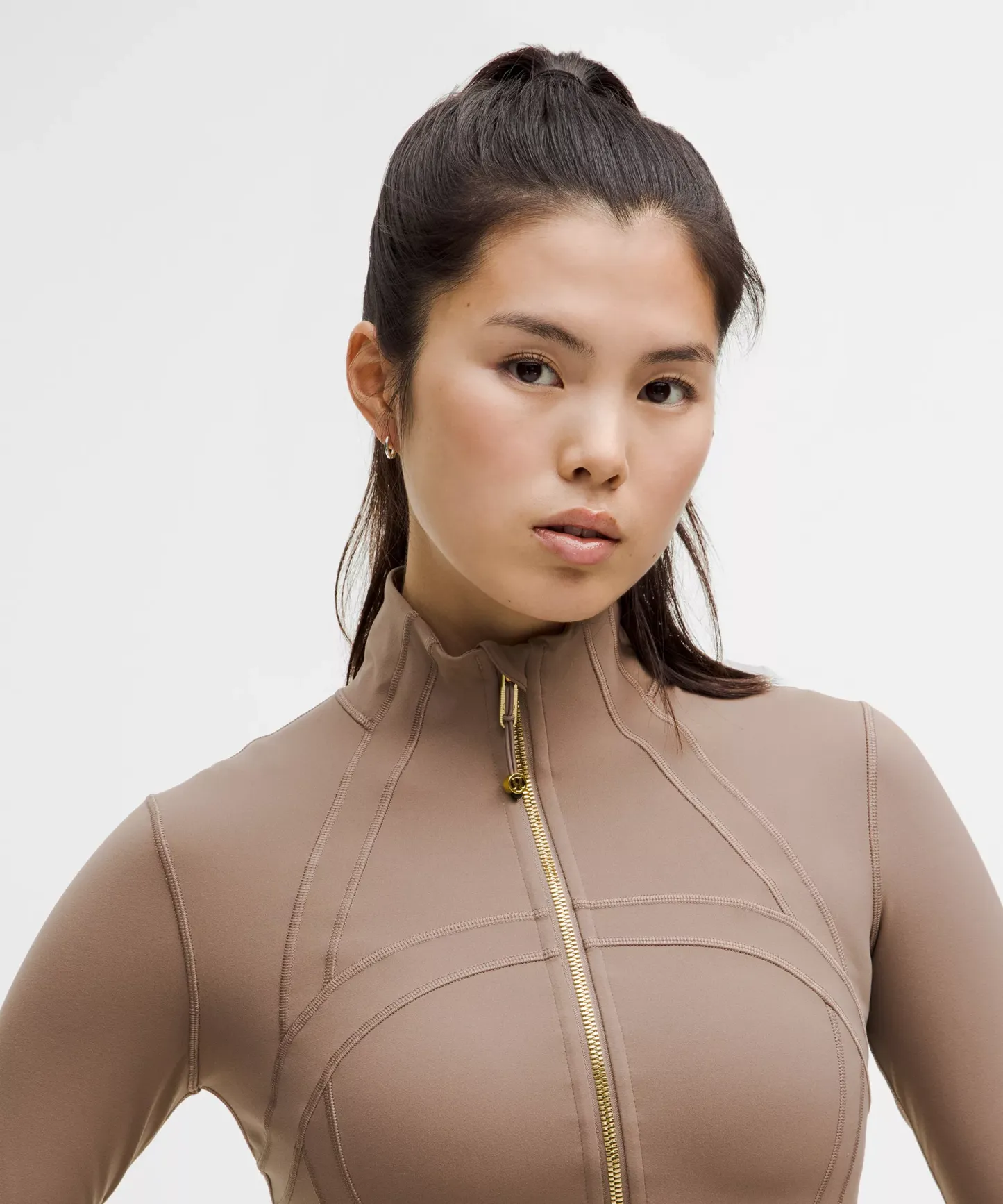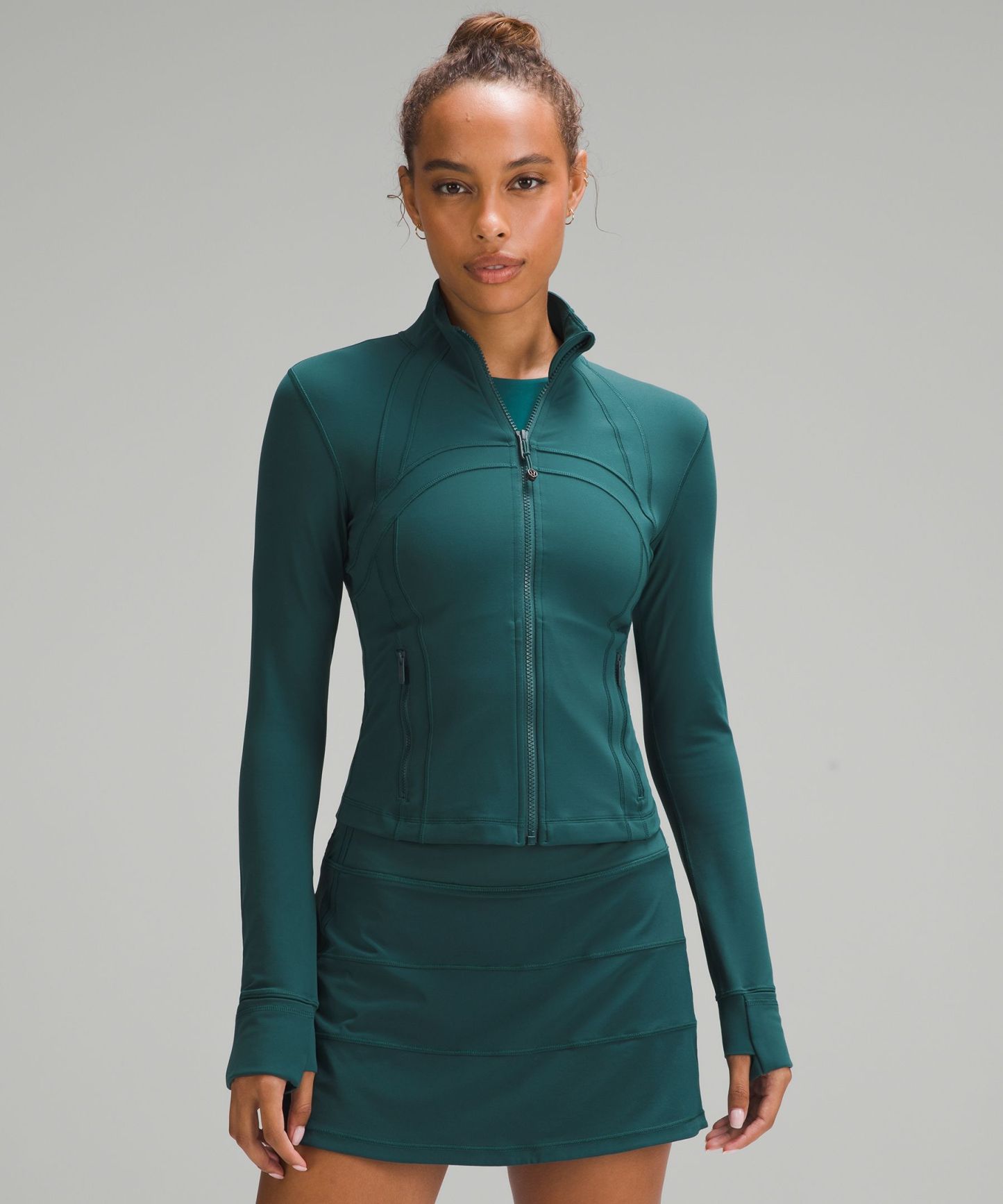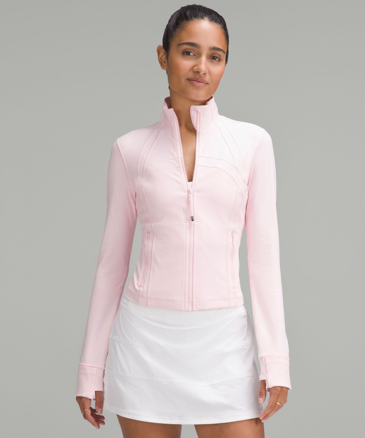 - Elastic zipper pull doubles as an emergency hair tie