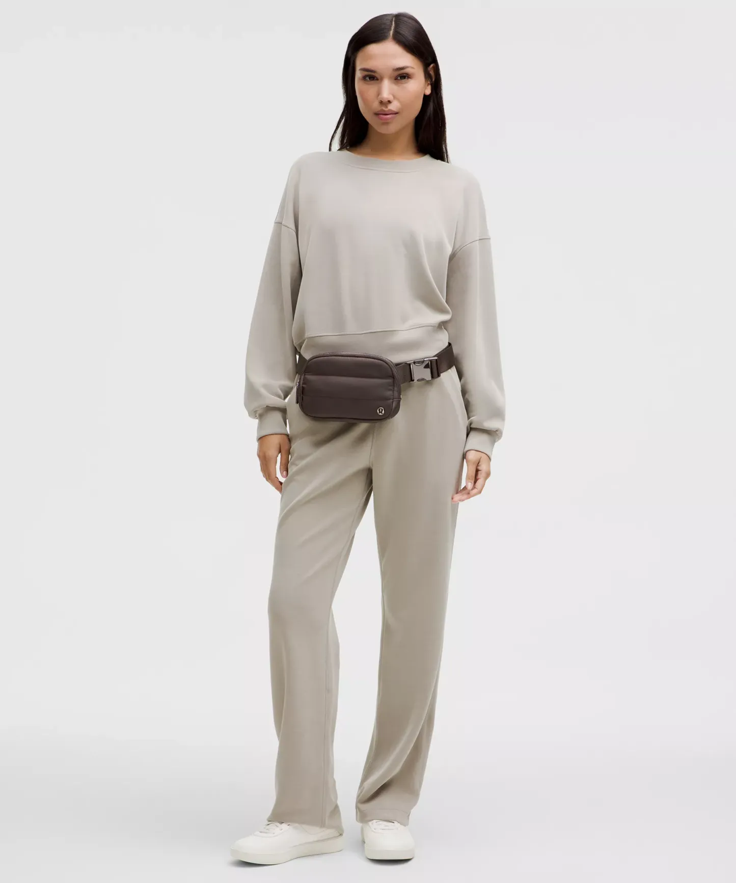 - Once you find your perfect fit, tuck the excess belt bag strap into the elastic loops