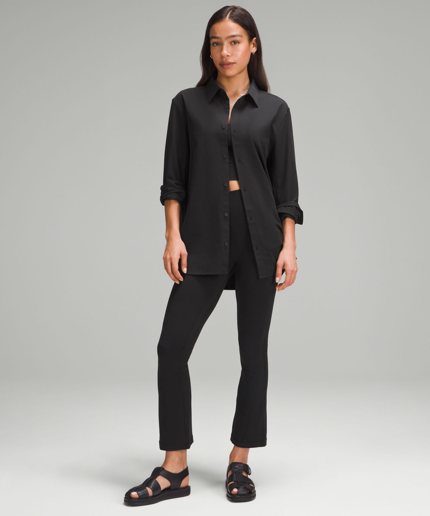 - Flares out subtlety from the knee to hem