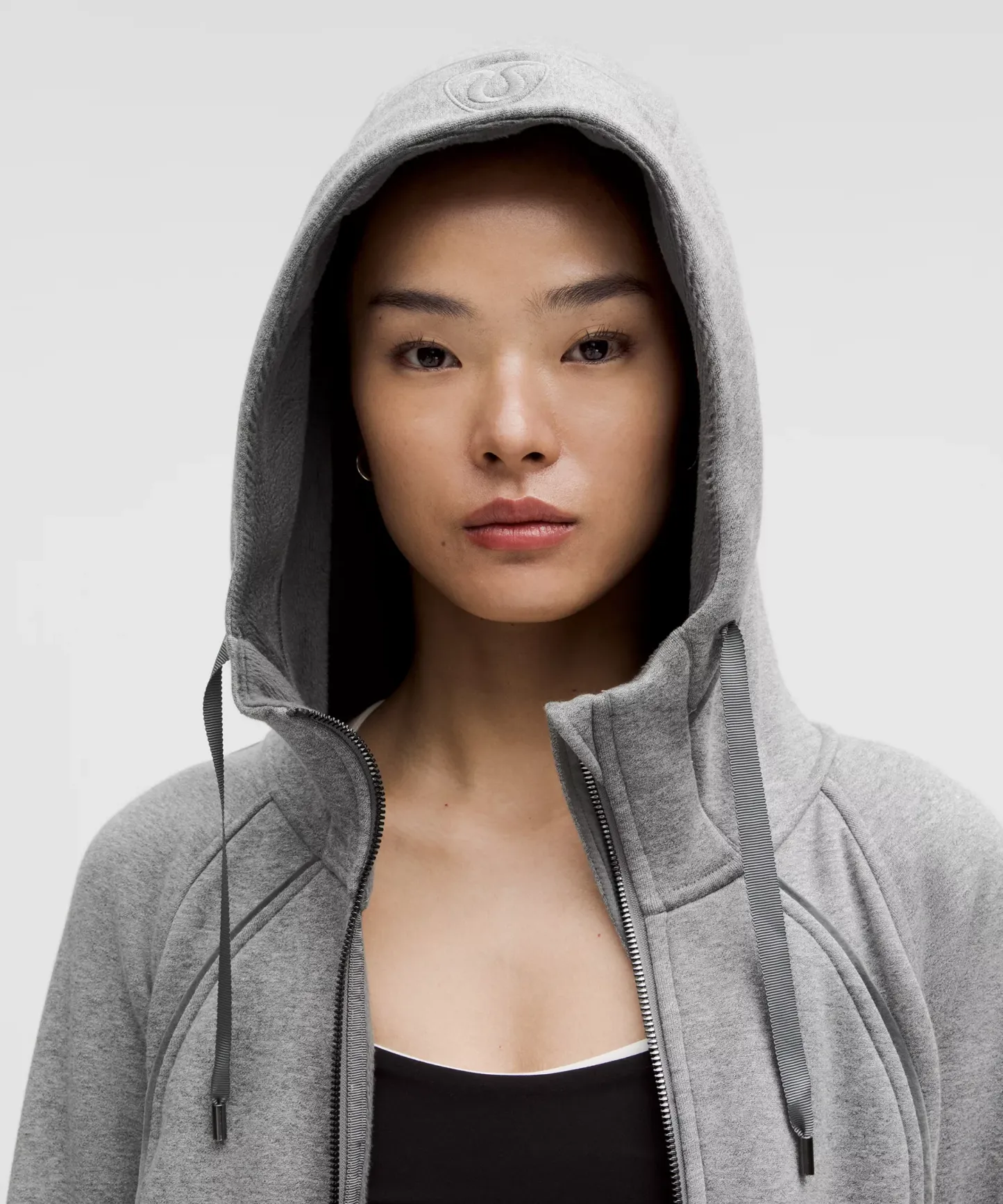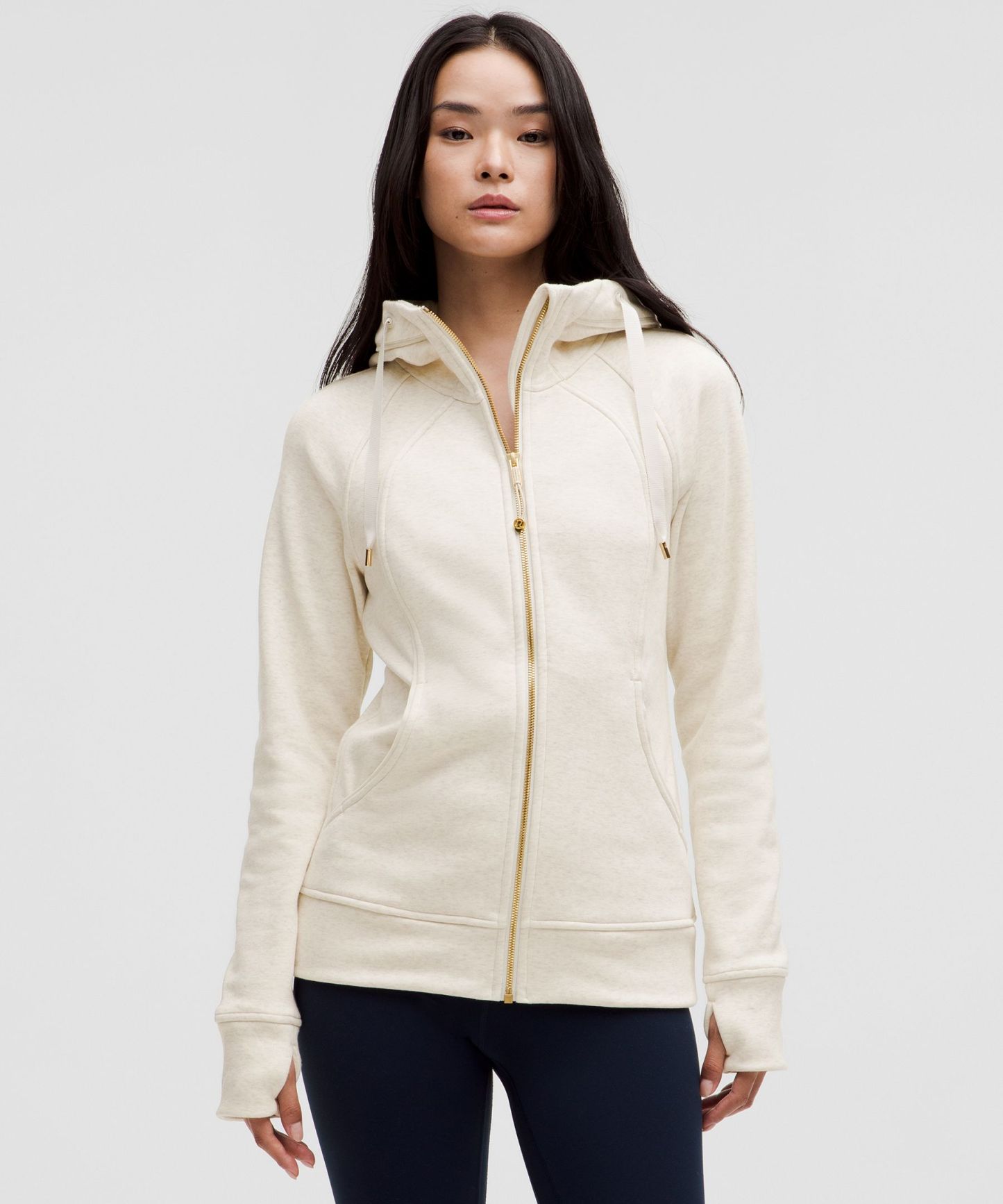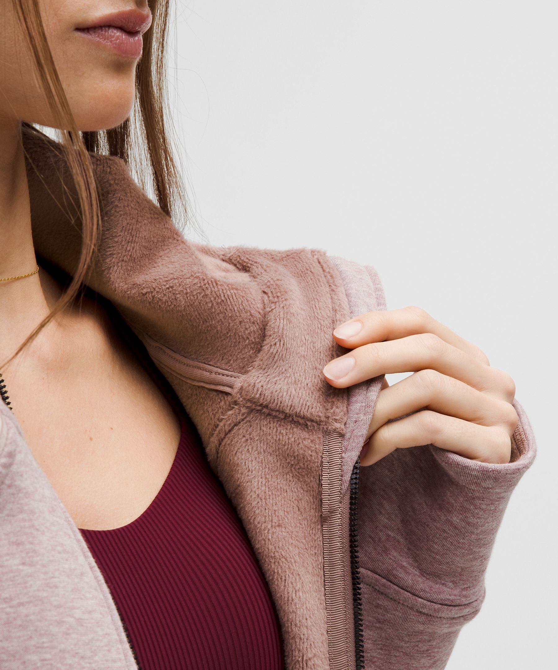- Elastic zipper pull doubles as an emergency hair tie