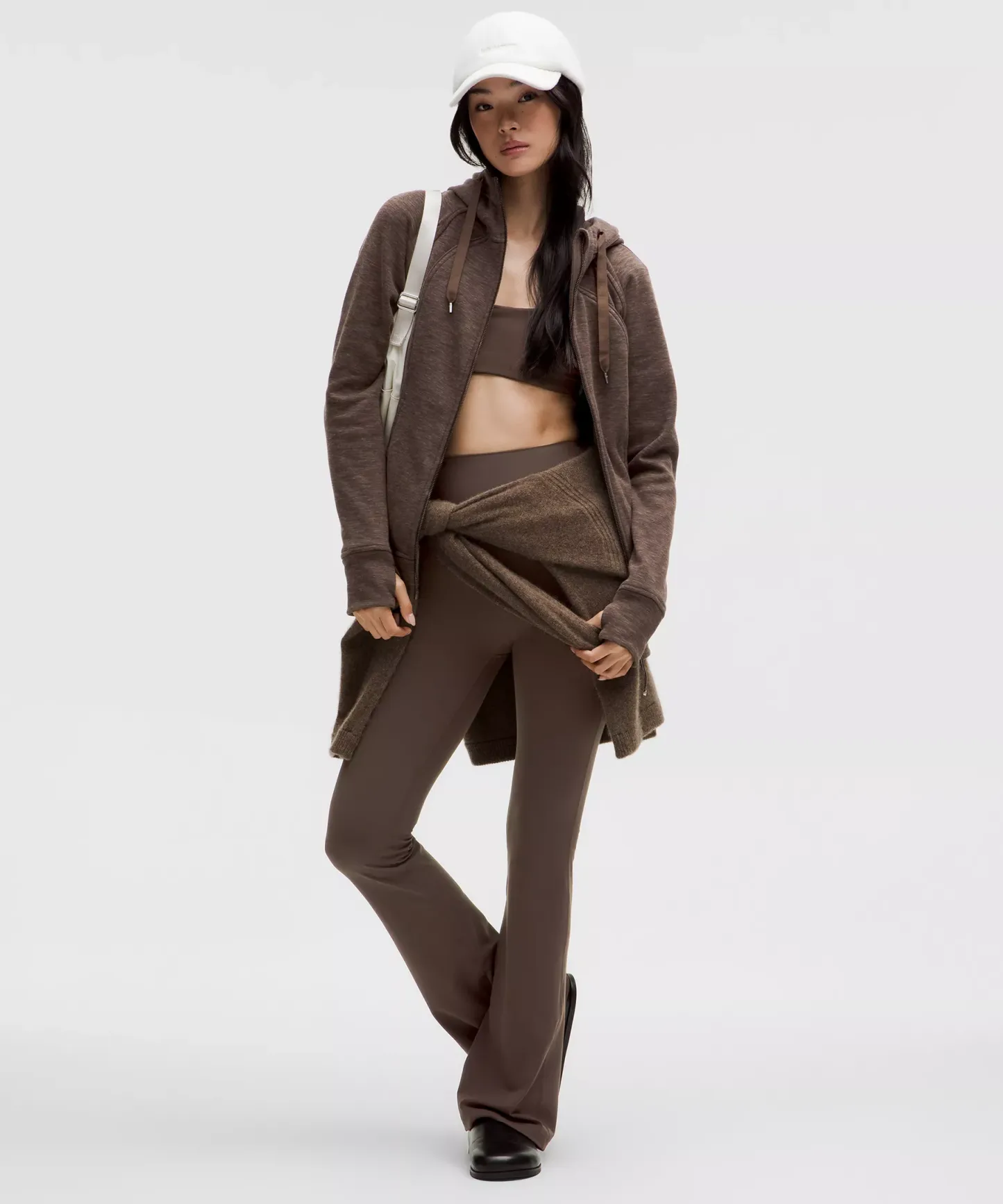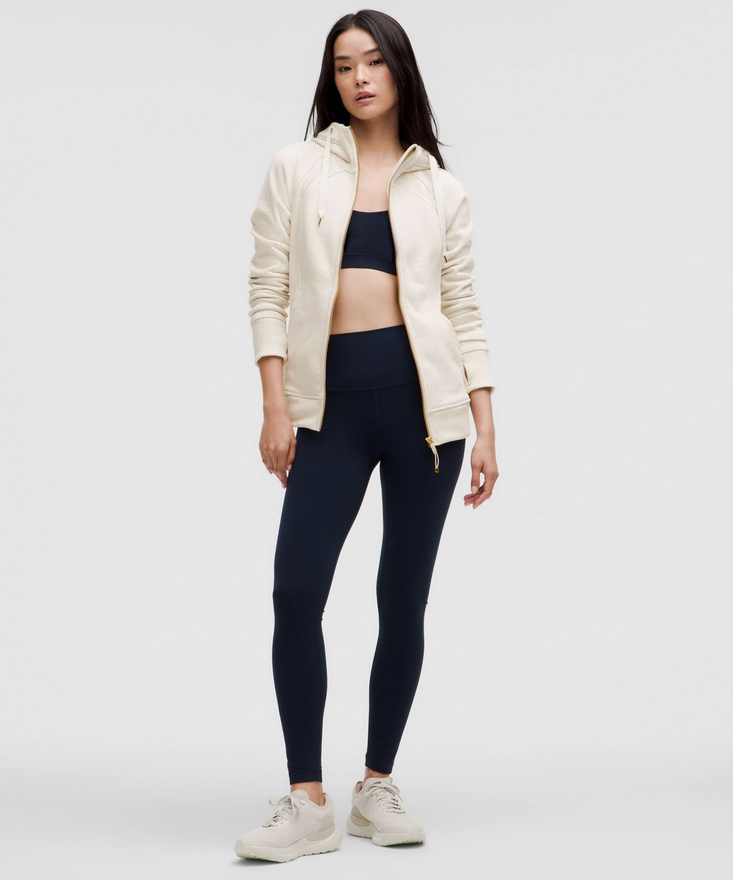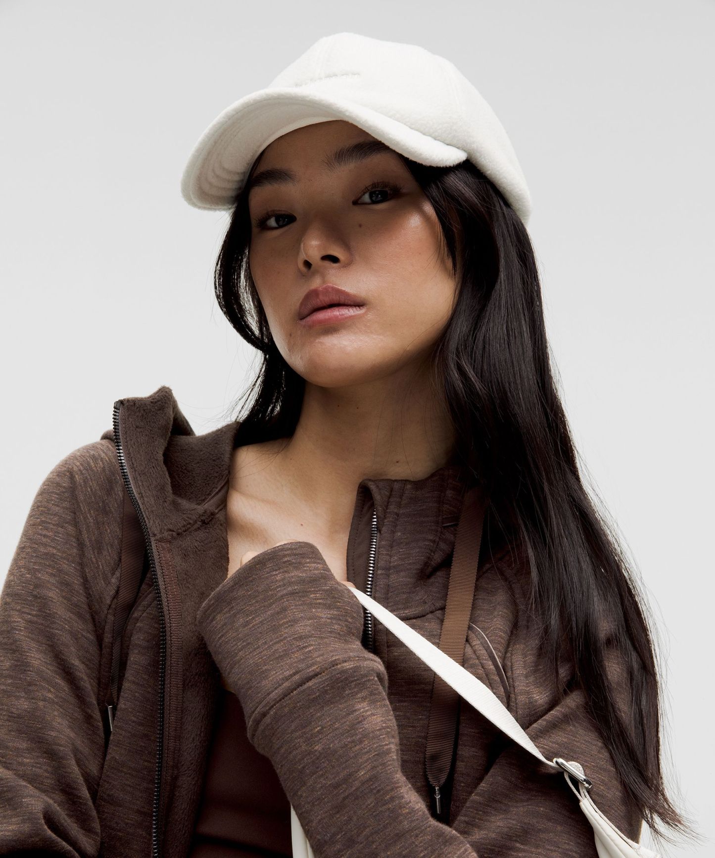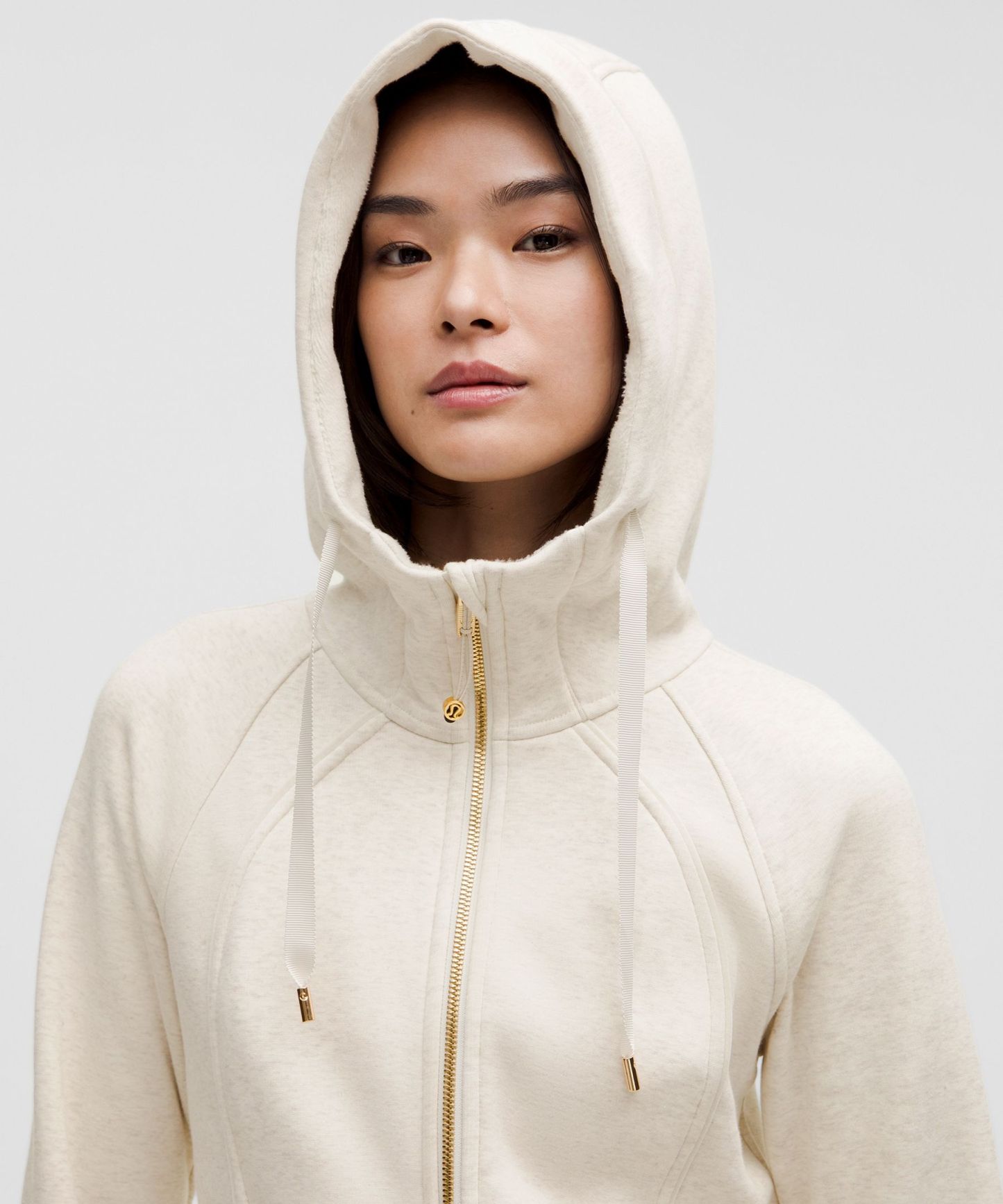 - Elastic zipper pull doubles as an emergency hair tie