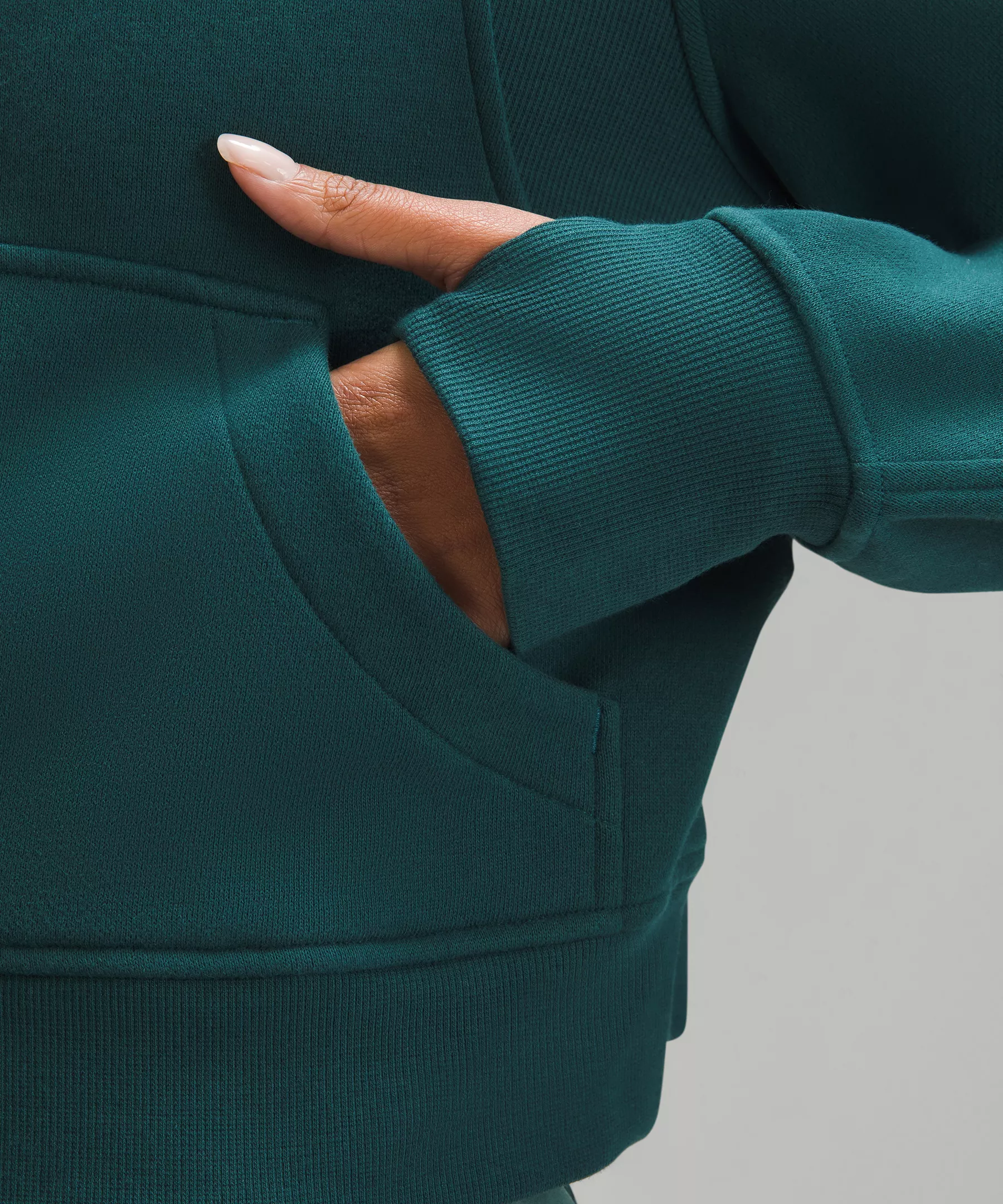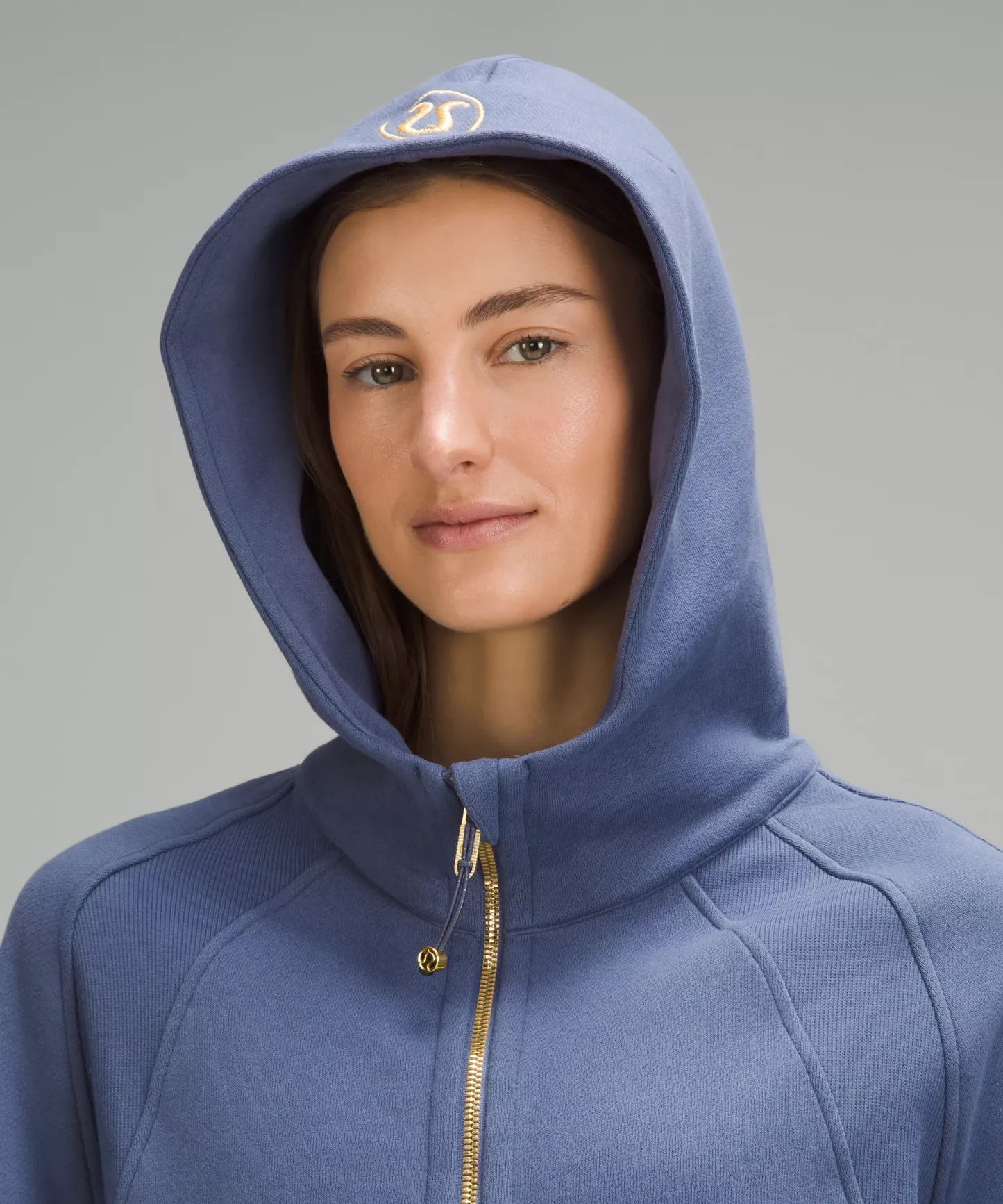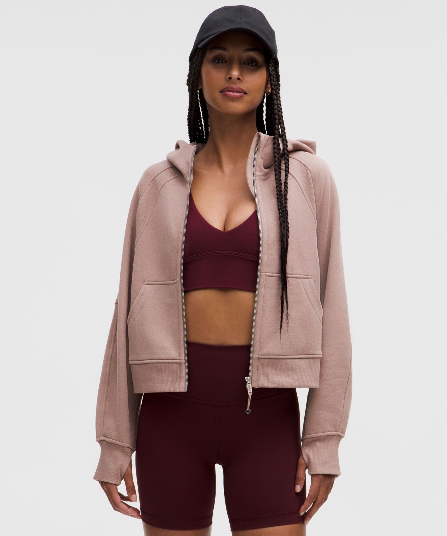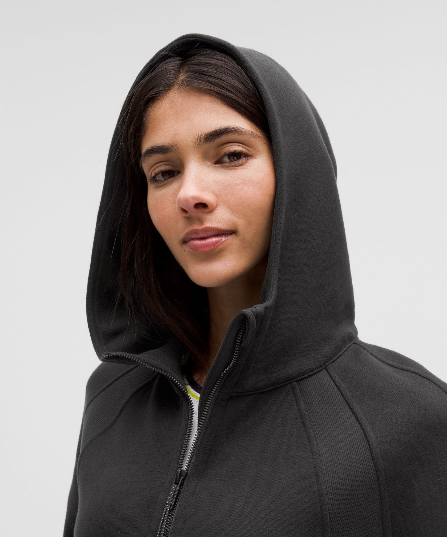 - Elastic zipper pull doubles as an emergency hair tie