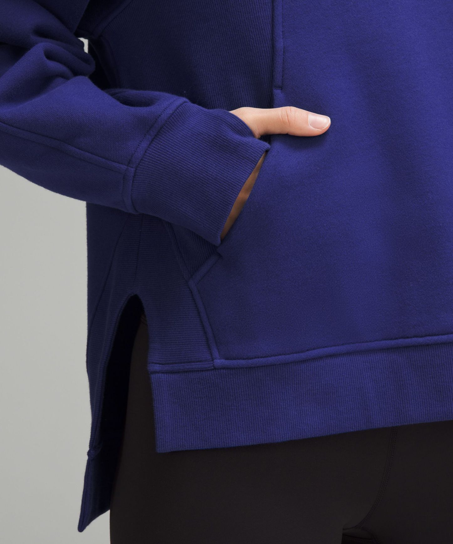 - Kangaroo pocket with hidden phone sleeve