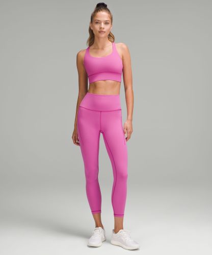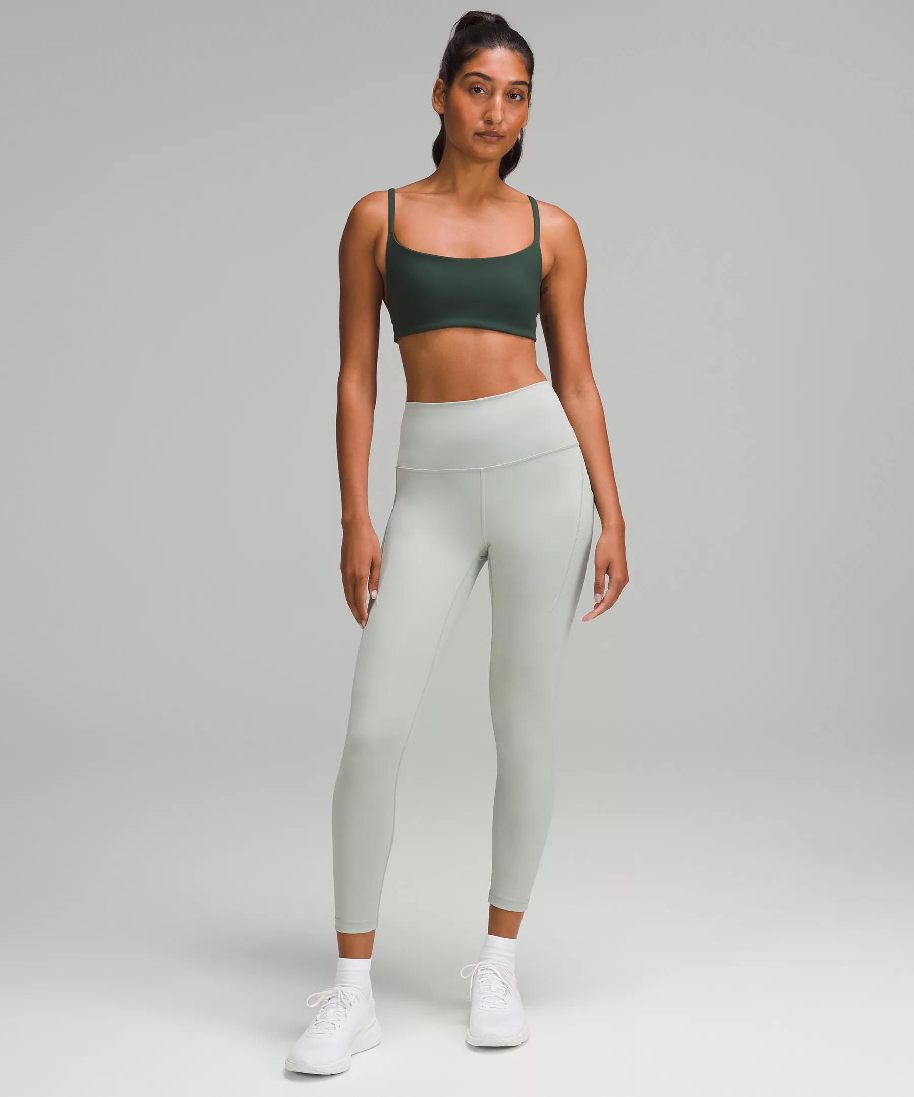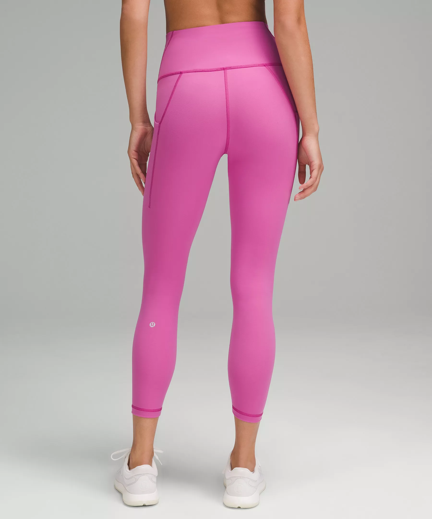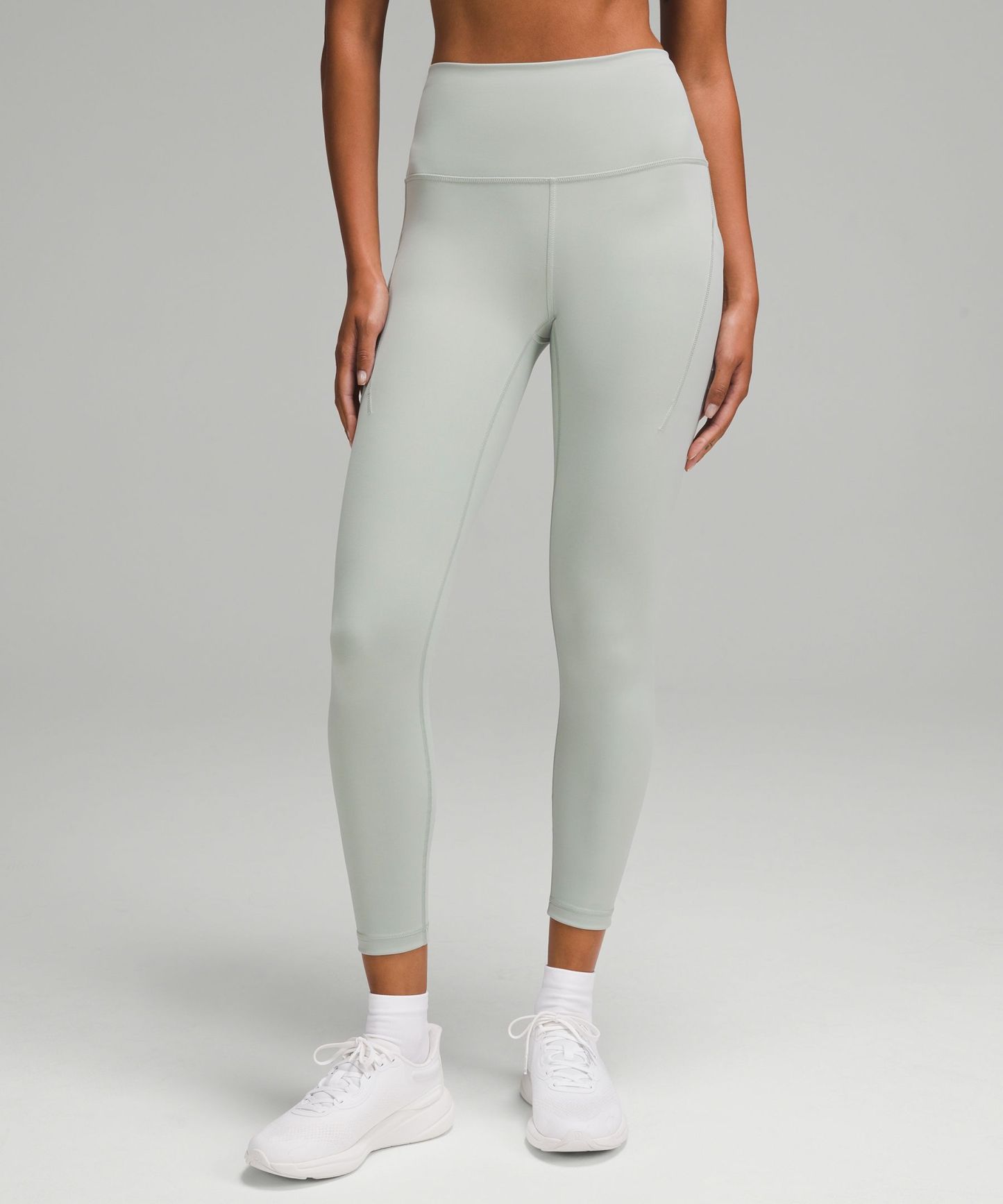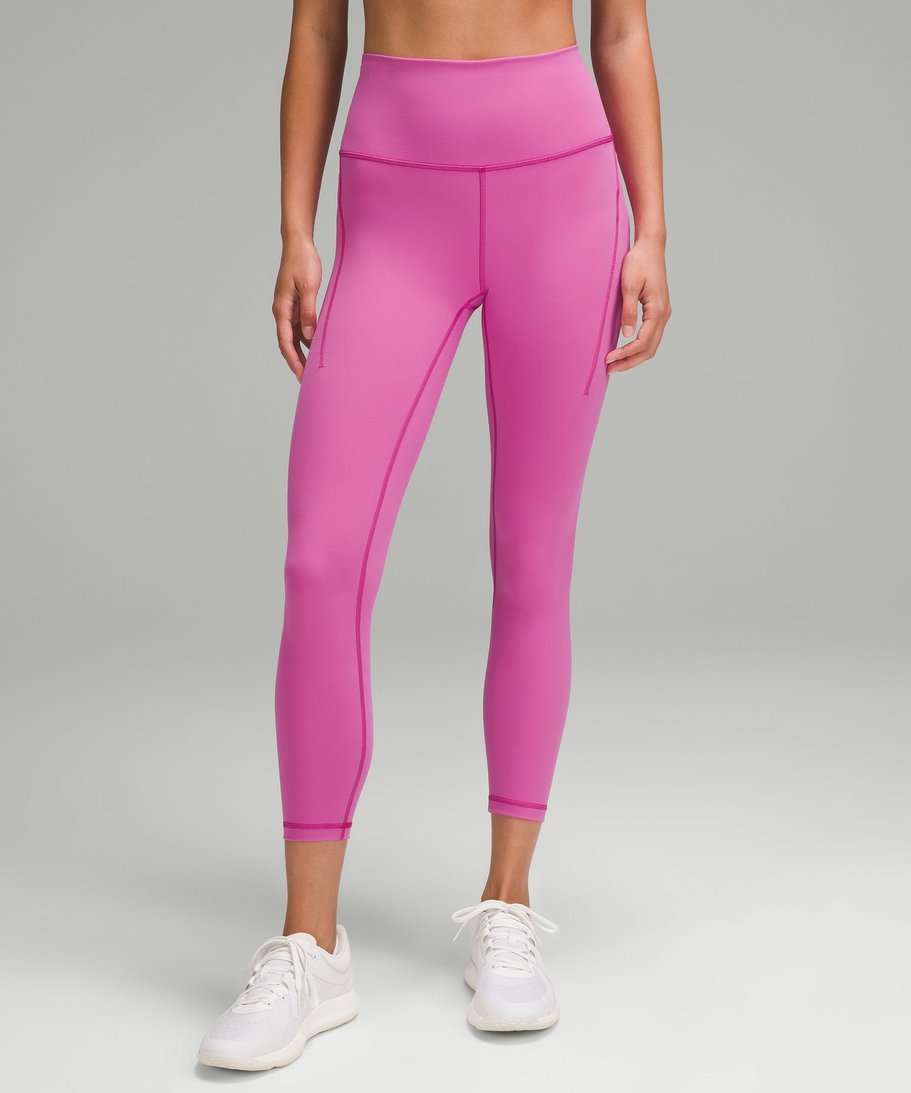 A high-rise waistband keeps you covered as you lift and squat. Our 25" length is intended to sit above your ankle.